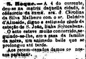 AO LADO: O chefe da estação de São João casou-se na em São Roque, então o municipio ao qual a estação de São João pertencia