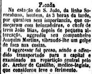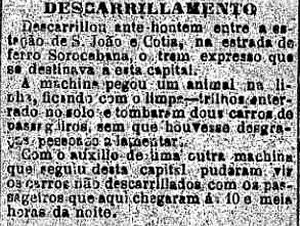 AO LADO: Acidente entre São João e Cotia (Itapevi) (O Estado de S. Paulo, 9/10/1896).