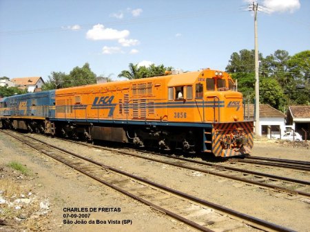 a n.º 3856 (ex-FEPASA), esta última exibindo o recém criado padrão