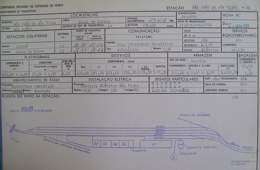 pátio de São João da Boa Vista em novembro de 1968 (Clique sobre a figura para ter maiores informações) (Acervo Museu da Companhia Paulista, Jundiaí, SP - Reprodução