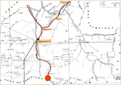 km 172 quase a meia distancia entre Leme e Pirassununga".