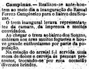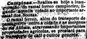 AO LADO: O dia da inauguração da estação de Souzas (O Estado de S. Paulo, 15/12/1892). |