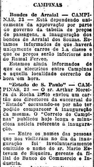 para linhas de bondes elétricos em Campinas. Em 17 de dezembro