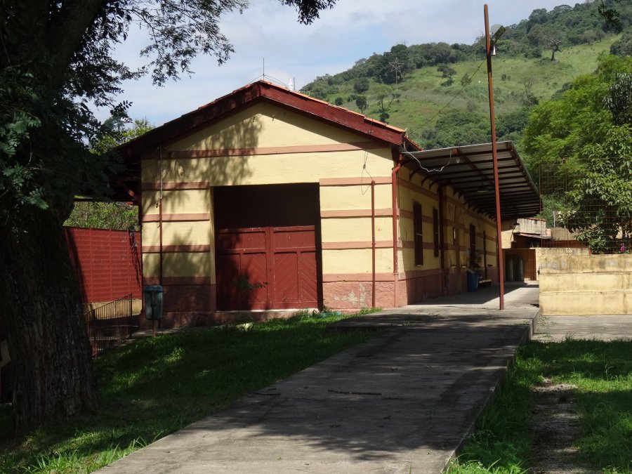 Em 2015, ainda de pé, funcionava como escola. Os trilhos ainda