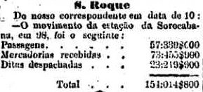 AO LADO: Movimento financeiro na estação de São Roque em 1898 (O Estado de S. Paulo, 2/4/1899). |