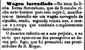 AO LADO: Incendio em vagão de trem misto perto de São Roque (A Provincia de S. Paulo, 25/11/1875). |