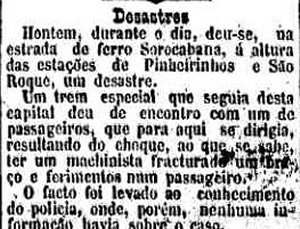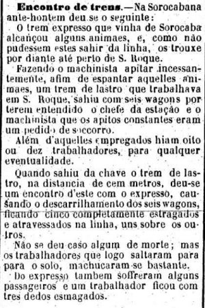 AO LADO: Acidente em São Roque em São Roque (A Provincia de S. Paulo, 10/03/1882). |