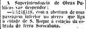 AO LADO: Passagem sob o aterro em São Roque (O Estado de S. Paulo, 19/07/1900). |