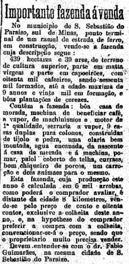seu ponto máximo em 1911, quando alcançou São Sebastião do Paraíso,
