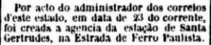 AO LADO: A estação ganha uma agencia de corrreios (O Estado de S. Paulo, 24/4/1890). |