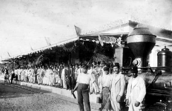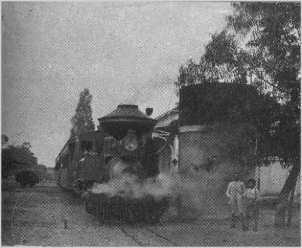 a sua fazenda em Loreto. Vê-se na frente da locomotiva a mesma