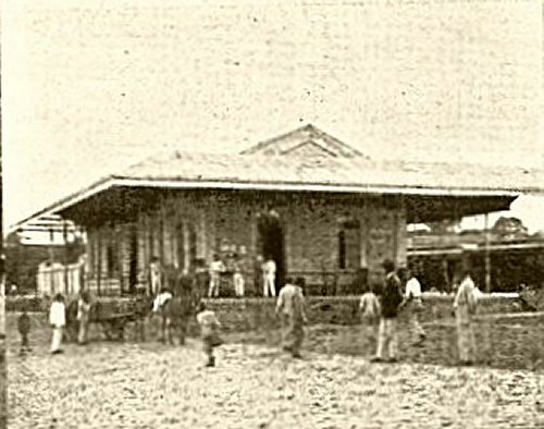 O prédio da estação que em 2020 ainda existia, como museu, teria sido construída em 1898, depois de a linha já estar funcionando. Deveria, claro, haver uma estação provisória.