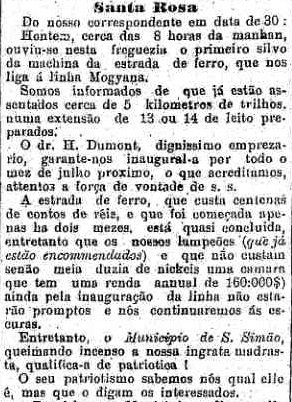 ferrovia que saía da estação de Santos Dumont, aberta em 5/6/1908