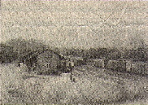 ACIMA: A estação de Hansa, depois Corupá, em foto de 1920 (Autor desconhecido).