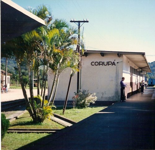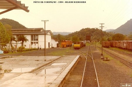 ACIMA: Pátio da estação de Corupá em 1984 (Foto Nilson Rodrigues).