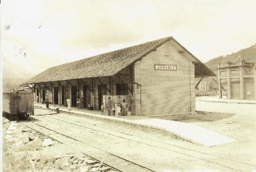 ACIMA: A estação de Jaraguá do Sul provavelmente nos anos 1950 (Autor desconhecido).