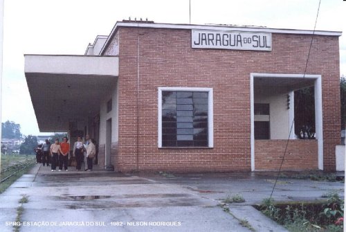 ACIMA: Aguardando o trem em Jaragua do Sul (anos 1970, provavelmente - Autor desconhecido).