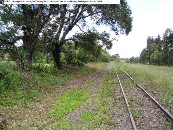 que já foi demolida. À direita, parte da plataforma e uma casa
