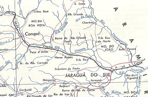 até Hansa (Corupá), em 1913 até Tres Barras,
