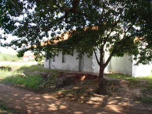 uma enorme figueira e várias casas (novas) de colonos da Usina