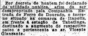 AO LADO: Compra de terreno para aumentar a área do pátio da estação (O Estado de S. Paulo, 12/5/1920). |