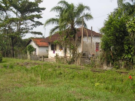 e semi-destruída e cercada de mato. "A estação de Taninguá