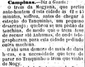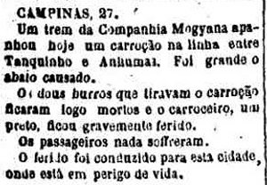 AO LADO: Acidente em Tanquinho (A Provincia de S. Paulo, 02/07/1882). |