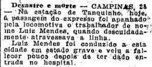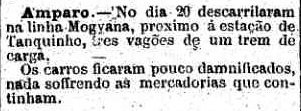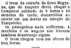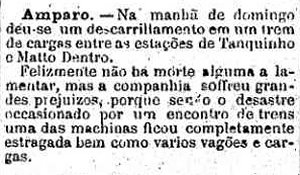 AO LADO: Acidente entre Tanquinho e Anhumas (O Estado de S. Paulo, 28/6/1891). |