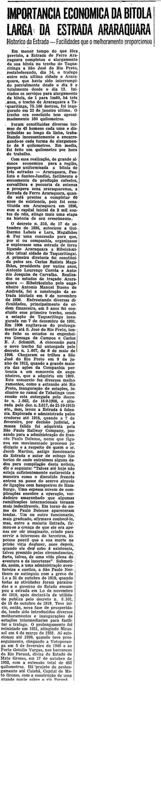 AO LADO: Inauguração do trecho de Araraquara a Taquaritinga - CLIQUE SOBRE O ARTIGO PARA VÊ-LO COMPLETO (O Estado