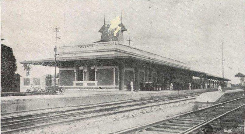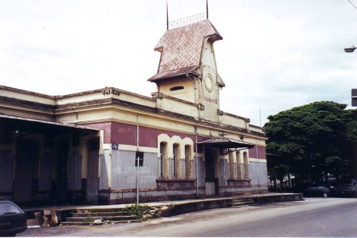 A estação original de Taubaté (ao fundo).