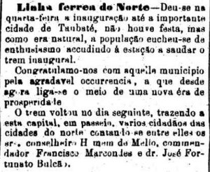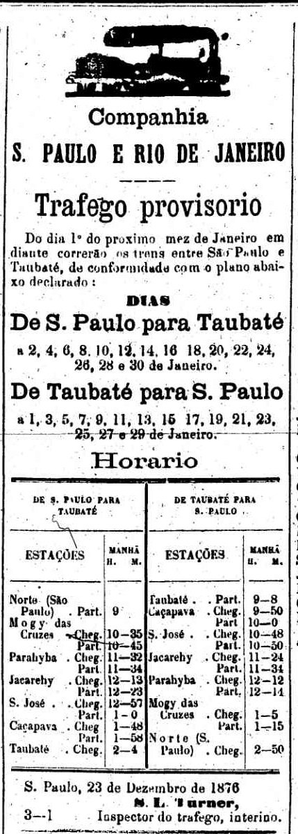 de Taubaté foi aberta no final de 1876 pela E. F. do Norte como estação