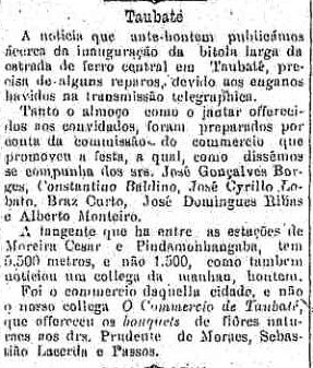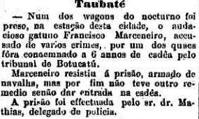 do trem em Taubaté, deixou-o com seu empregado para tomar