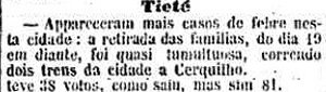 AO LADO: Failia fogem de trem para Cerquilho por casa da epidemia de febre amarela (O Estado de S. Paulo, 26/02/1900). |