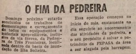 ACIMA: A desmontagem da pedreira e de seu ramal em 1973 (Diario Popular, 19/10/1973).