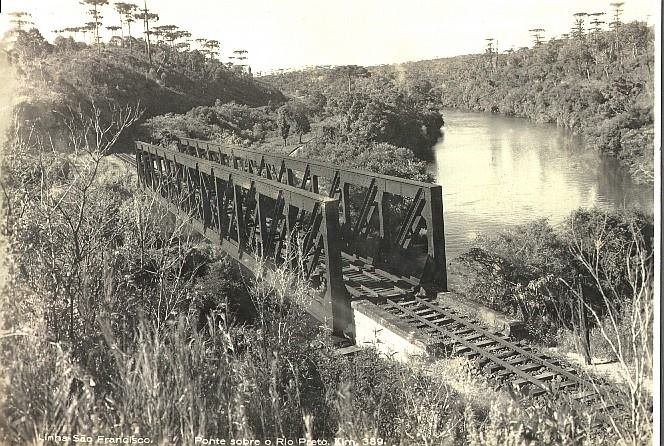 "Nos anos 1930, o trem a vapor que ia de Porto União para Mafra e São Francisco era chamado de "trem bananeiro". Nas estações, as paradas permitiam um café com sonhos bolinhos de graxa. Em Marcílio Dias, um restaurante ferroviário, o almoço, o café... Em Mafra, o trem era dividido e alguns carros iriam para Curitiba, outros para São Francisco. O bananeiro era um trem misto. Atrelados aos carros de passageiros iam também 2 ou 3 vagões-gaiola até São Francisco. Nesta estação, esses vagões eram desinfetados com um banho de cal e, em seguida, forrados com folhas de bananeira. Aí, eram carregados com cachos de banana, que seguiriam para o Rio Grande do Sul, e urgente, pois a banana amadurece rápido. Por isso, seguiam junto com os carros de passageiros. No retorno, juntava-se ao Bananeiro, em Mafra, vindo de Curitiba, o P-13. Sempre as mesmas paradas, as mesmas guloseimas nas estações. E, às vezes, uma parada para jogar água na caixa de graxa da roda do truque do tênder. Em Valões, o Bananeiro entrava na estação apitando de modo diferente. É domingo, dia de passeio do povo, dos namorados, dos noivos, até dos casados, pelos trilhos enquanto aguardam a chegada do trem. Continuava a locomotiva 310, agora devorando a escuridão com seu potente farol. Ao longe, as luzes de Porto União. Mais uns quilômetros, mais alguns minutos... Toda a cidade vive aquele momento, noite após noite. Está chegando o Bananeiro! Próximo à estação, um garoto na janela de sua casa saúda o maquinista. É "o garoto da ponte". Chega o "Bananeiro" na estação às 9:20h da noite, no horário!" (Relato recebido sem seu autor). |