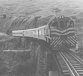 Este trem de passageiros da Leopoldina (no final, operado pela RFFSA) corria na chamada linha do Manhuaçu. Existiu desde 1883 quando foi aberto o primeiro e curto trecho até Palma e a partor de 1915 passou a fazer todo o trecho até Manhuaçu, que passou a ser a estação terminal. Os trens foram desativados de 1977 a 1979, dependendo do trecho: o último sobrevivente foi o trecho Recreio-Porciúncula, em 1979, se confiarmos nos horários impressos nos guias da época. Na verdade, os trens partiam de Três Rios, onde se dividiam composições da Leopoldina que vinham do Rio de Janeiro. Em Recreio, deveria haver mais uma divisão de comboios, depois de cerca de meia hora de parada: uma parte do trem seguia para Manhuaçu, outra para São Geraldo, encontrando a linha Três Rios-Caratinga pela linha do Centro da Leopoldina. Como em praticamente todos os trens de passageiros do Brasil a partir dos anos 1960/70, esses trens passaram a ser usados em trechos curtos, de uma estação a outra; raramente alguém se dispunha a seguir pelo percurso todo, já que naquela época mesmo as precárias estradas e os pequenos ônibus já faziam os trechos longos em tempos bem menores. Como curiosidade, na região de Porciúncula, o trem entrava e saía do Estado do Rio de Janeiro por alguns quilômetros (as estações de Porciúncula e de Dona Emília ficavam neste Estado). Hoje não existe mais linha entre Cisneiros e Manhuaçu, sobrou apenas com tráfego quase nulo de cargueiros e autos de linha os trilhos entre Recreio e Cisneiros. |