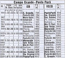 O trem do ramal de Ponta Porã, que partia da estação de Campo Grande mas que percorria linha própria somente a partir da estação de Indubrasil (onde era seu quilômetro zero), começou a circular em 1953, quando toda a linha ficou pronta. Porém, já havia trens percorrendo trechos menores que foram sendo entregues, o primeiro em 1944 até Maracaju, o segundo até Dourados em 1949. Somente em 1/6/1996 este trem foi desativado, tendo sido ele um dos últimos trens de passageiros a deixar de funcionar no País. |