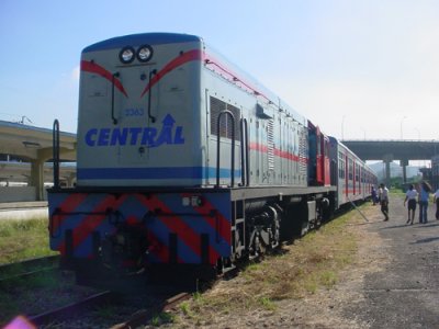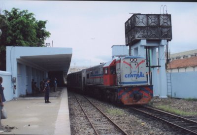 de passageiros puxados por uma locomotiva GE U12-C da CENTRAL. A composição