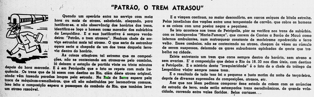 os atrasos aumentando... isto já nos anos 1940, como mostra