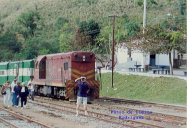 "Fiz uma viagem maravilhosa em 1995, no Trem da Mata Atlântica que fazia o trajeto Angra dos Reis - Lídice - Angra. A composição era formada com cinco ou seis carros (não me lembro) de administração, buffet e três ou quatro de poltronas, tracionados pela G8 4057. A linha passa por um corte feito na rocha e sempre pingando agua na linha, daí o nome "chuveirinho". Em Lídice, enquanto as mulheres compravam bugigangas na feirinha, a G8 manobrava o trem posicionando-o para a volta para Angra após o almoço" (José Rodrigues, 2007). | ||