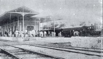 de Descalvado, c. 1920. Na plataforma da esquerda, chegava e saía