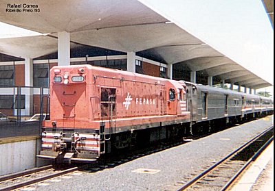 Acima, o trem deixando Uberaba seguindo para Ribeirão Preto,