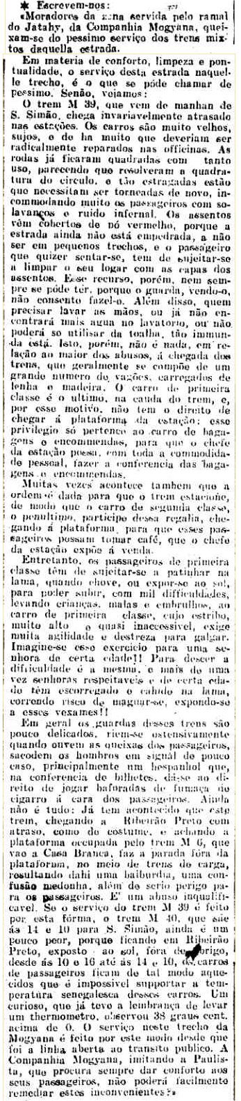 de 1916, o leitor descrevia os problemas dos trens mistos que corriam