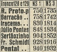 de Ribeirão Preto a Pontal, no ramal de Sertãozinho. Origem da linha: Ribeirão Preto-Sertãozinho - 1899 Sertãozinho-F. Schmidt - 1907 F. Schmidt-Pontal - 1914 Pontal-Passagem - 1903, este construído pela Cia. Paulista |