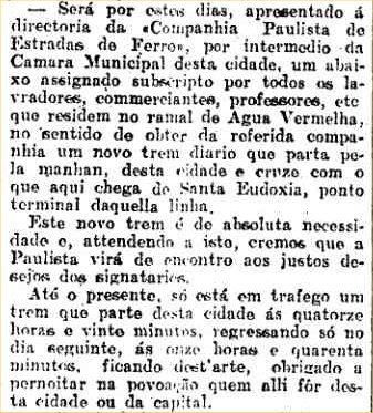 o ramal de Agua Vermelha, para que quem necessitasse vir de São