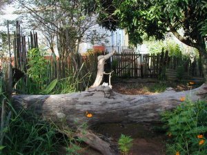 À direita, casa e árvore tombada. Abaixo, casa e palmeira na vila