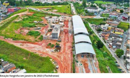 ACIMA: Quanto à estação que está sendo montada no local onde ficava o prédio velho e bastante menor e diferente do era até 2001, quando o trem deixou de usá-la: A nova estação, a ser inaugurada durante o ano de 2023, ela já conta (em janeiro de 2023) com itens que demonstram um ritmo mais acelerado nas obras. Entre eles estão os trilhos, que praticamente já foram reinstalados desde a estação de Mendes-Vila Natal, faltando apenas um pequeno trecho na plataforma sentido norte. A cobertura já ocupa todo o espaço previsto, mas ainda recebendo estruturas finais enquanto já é possível ver a alimentação aérea montada e as estruturas de iluminação da plataformai (Texto e fotos: metrocptm.com.br e Techdrones, em o1/1973).