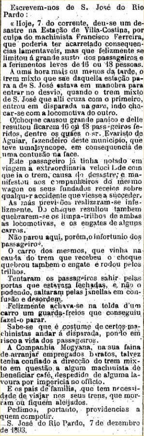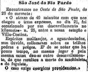 AO LADO: Acidente próximo a Vila Costina (O Estado de S. Paulo, 23/3/1898). |