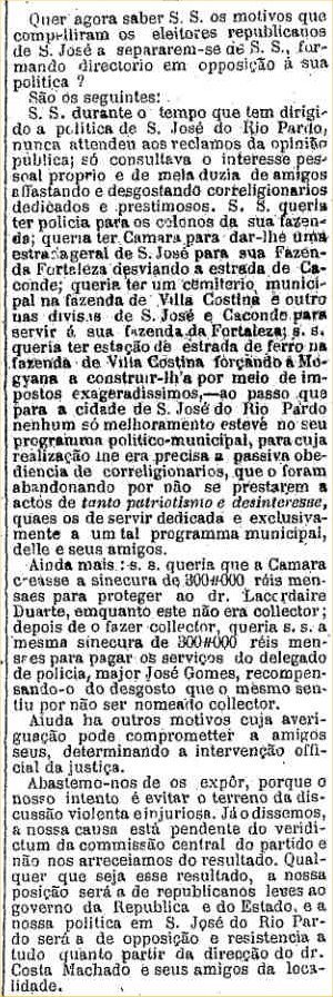 A influencia do Sr. Costa Machado em Villa Costina - CLIQUE SOBRE O TEXTO PARA LE-LO INTEIRO (O Estado de