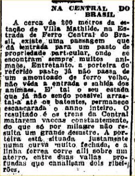 da estação (O Estado de S. Paulo, 15/6/1939).